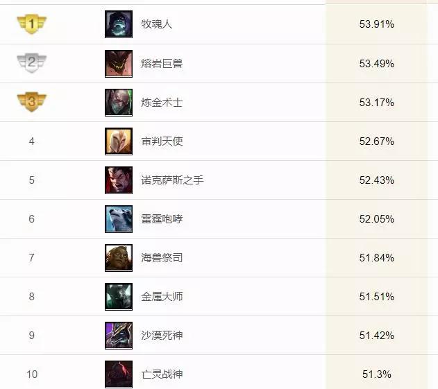 lol上单英雄排行榜