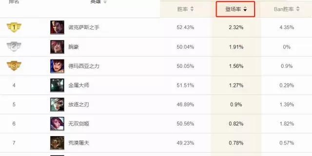 目前在LOL国服上单的登场率上,诺手登场率排名第一,而腕豪登场率则是排名第二,排名第三的则是德玛西亚之力盖伦。不过在胜率方面,腕豪的胜率排名在很后面,连前十都不到,排名第一的则是单带推塔的老大哥牧魂人,排名第二第三分别是石头人和炼金。或许是因为匹配太多练英雄的,拉低了腕豪整体的胜率吧,在腕豪的出装方面,司机哥建议还是正常的黑切血手(不要忘了布甲鞋这个神器),然后出绿甲和蓝盾,基本上就是非常肉,后期伤害经常伤害也足以威胁到对面的C位!