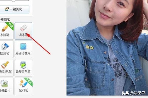 2、手动滑到美化栏,并且一定要选左侧的“抠图笔”,因为我们要做的是去掉图片上不需要的东西
