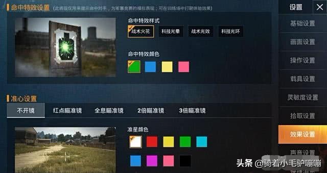 我们可以在设置这里调整命中特效的样式,比如选中“战术火花”,玩家使用枪械命中敌人,远远看去就像是冒绿光。