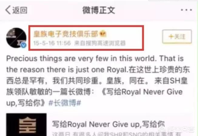 15年时候的皇族还叫SH,当时的领队敏敏在微博上发了一篇长微博,其实意思就是不抛弃不放弃,皇族一直会和你们共存亡,请为我们加油的一些鼓舞士气的话,开头以及中间部分没有问题,但是在结尾处却非常不妥。