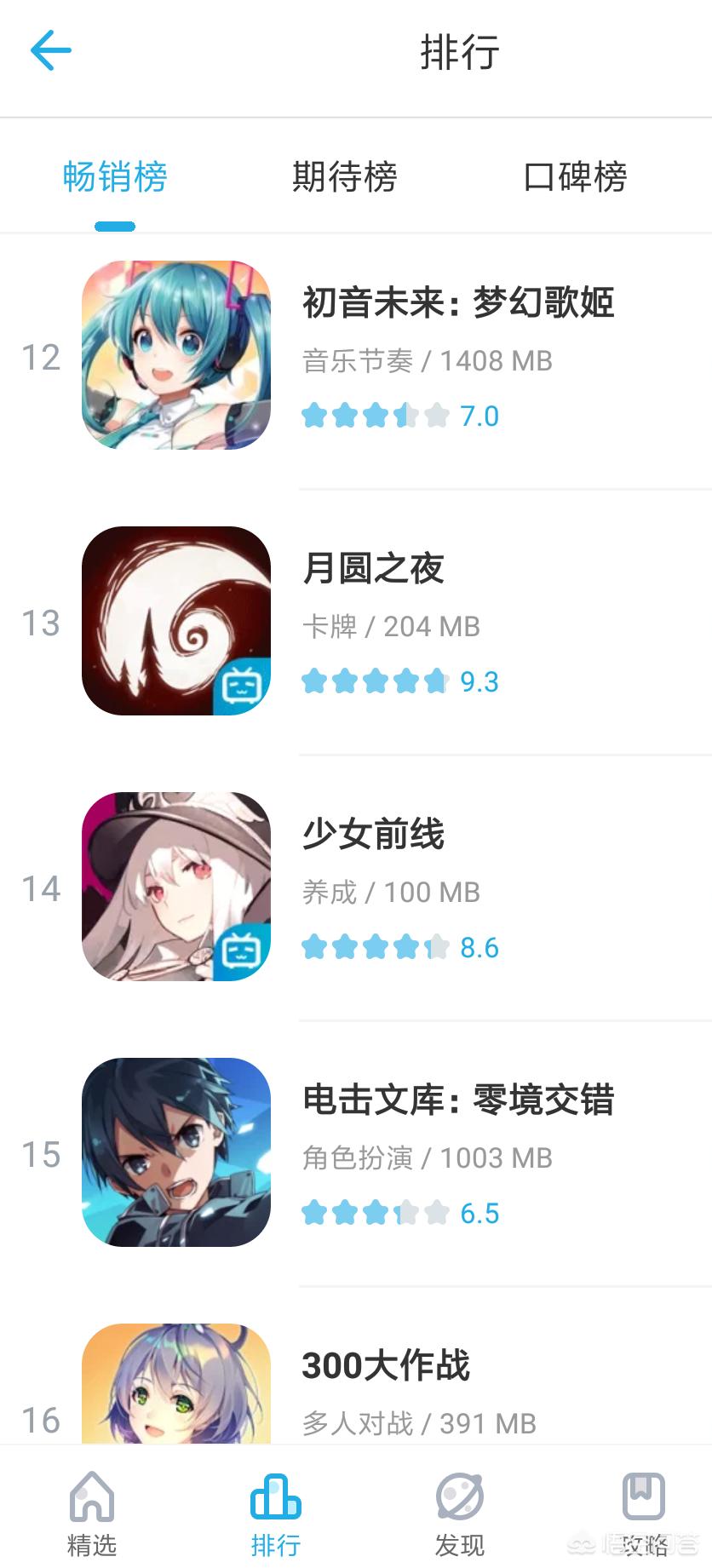 首先要说的一点,关于《电击文库:零境交错》和《初音未来:梦幻歌姬》这两款腾讯游戏本身,制作的并不出彩,但也算不上很烂,只能说是一般般的程度。跟其他大公司目前流行的二次元手游一对比就更逊色一些。既然是关于二次元的游戏,我们就用B站的手游排行榜参考一下:目前《初音未来:梦幻歌姬》排在12位7.0分,《电击文库:零境交错》排在15位6.5分。