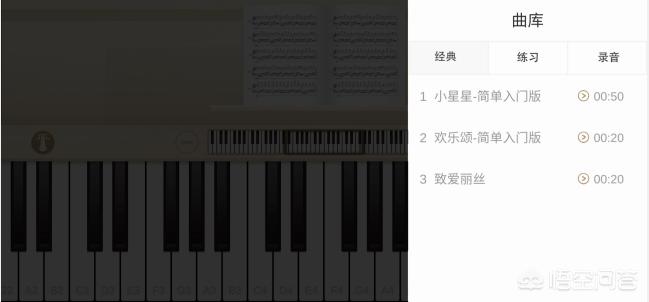 还可以点击钢琴键盘模拟器中的“曲库”,挑选曲子进行练习。使用起来比较方便。