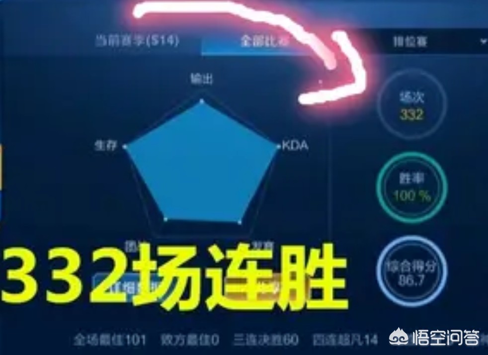 要知道,骚白333连胜之后竟然还是白金段位,由此可见骚白打得并不是同一个号!其次,骚白的是连胜靠的是和强力队友一起三排,并不能够体现实力!再者,根据战绩显示,骚白的连胜期间有过中断,而且是好几个赛季累加才达到的连胜!