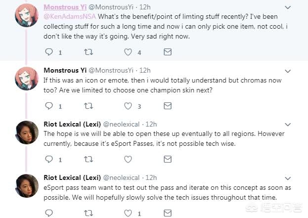 而其中这个炫彩皮肤中的红色是只有LPL赛区才能获得,这种行为肯定会造成国外玩家的不满,不过设计师回应的东西我感到真的有点东西:我们也希望最终能在全球开发,但目前有一些技术问题还没有解决。