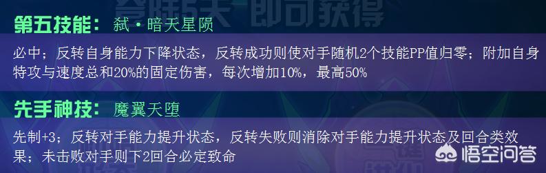 弑.暗天星陨(第五技能)反弱不绑先制,用处不大;附加自己特攻速度20%固伤,自身种族值低下,导致固伤收益不高。