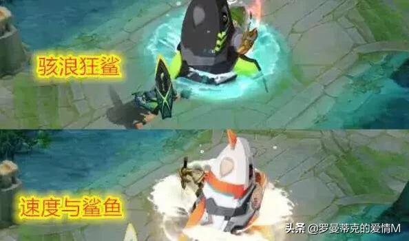 局内全技能特效则以墨绿色为主,1技能豪气斩释放二段会出现双鳍和独角为黄绿色的黑色巨鲨,看起来非常的凶猛霸气!