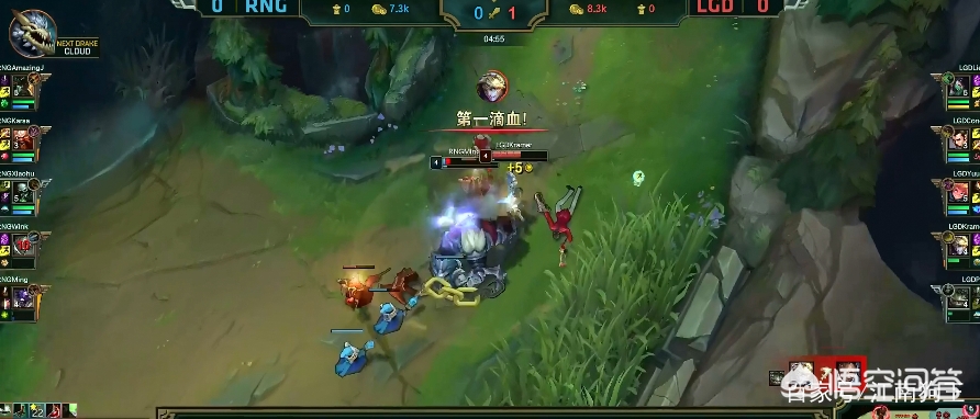 RNG和LGD的第一把由康帝抢下大龙,逆风翻盘成功。