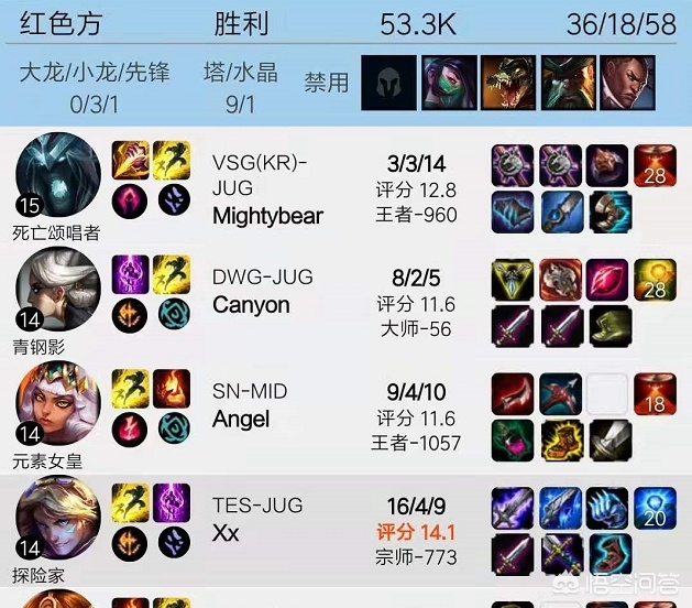 走A怪截至目前为止九场只输了一场,其胜率已经相当恐怖,要知道这可是韩服王者局,可以看到出装走攻速AP流,羊刀纳什之牙攻速鞋和帽子金身,金身能增加团战存活率,我们在MSI赛场见到的出装都是AD装备,依靠装备本身攻速快速打出被动,再利用Q的爆发伤害打出成吨输出。