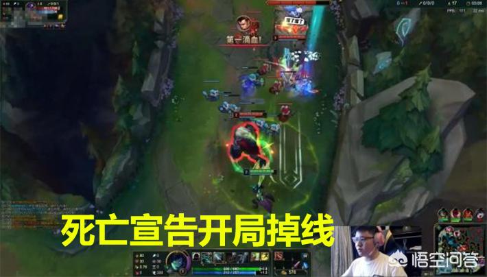 即使自家adc掉线,赵信也是来到下路进行gank,由于辅助的走位不慎被牛头顶进塔内,也是惨送一血!