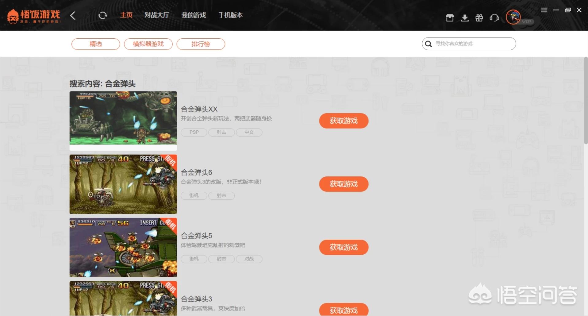 1,悟饭游戏厅,这里有大量的怀旧游戏,包括合金弹头,下载就能玩,还可以与别的小伙伴联机