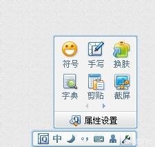 3、点击小扳手会出现一个对话框,这时候有多个图标出现,分别是符号,换肤,手写,字典,剪贴,截屏如下图。