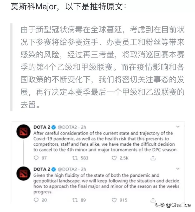 最近疫情特别严重,中国的疫情控制住了,可是国外却完犊子了,最不怕死的国家当属英国,瑞典,丹麦,人权大于生命,美国还相对严格一些了,在电竞方面,备受玩家瞩目的洛杉矶Major被推迟了,不过坏消息还不止这些,在洛杉矶Major之后,还会有2个Major,分别是俄罗斯举办的震中杯和新加坡Major,今天,V社宣布第四个Major以及minor被取消了,注意不是推迟或者延期,而是直接木得了。