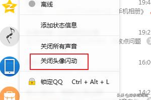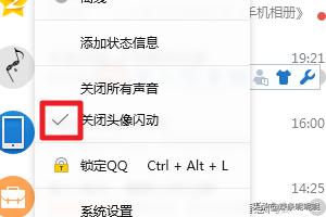2、在弹出菜单中你会看到,“关闭头像闪动”功能被勾选上了,点击去掉勾选。