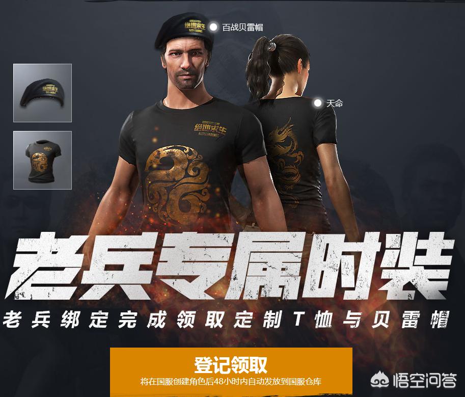 《绝地求生》为了吸引国际服老玩家回归,除了免费,还为老玩家准备了专属时装“百战贝雷帽”和“天命T恤”,看起来还蛮不错的!网页中也透露时装将发放到国服仓库,所以可以证明国服饰品与steam是不互通的。