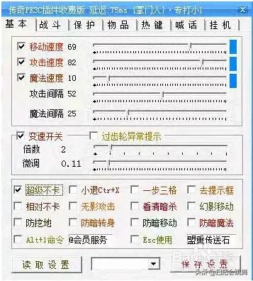 首先进入呼出来的主界面如下图,能决定游戏速度的有移动速度,变速齿轮,超级不卡,相对不卡,决定出刀速度的有攻击速度,变速齿轮,攻击间隔。
