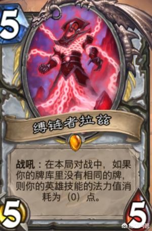 在加基森扩展包出现的拉兹在出现之时被玩家们吐槽致死,因为对于牧师来说并不缺那两费的奶量,所以也是坐稳了冷板凳,而这一情况在巫妖王版本有了天翻地覆的改观,拉兹和牧师DK的配合构成了一套毒瘤已久的卡组——宇宙(走A)牧,成为了人人喊打的第一毒瘤卡组