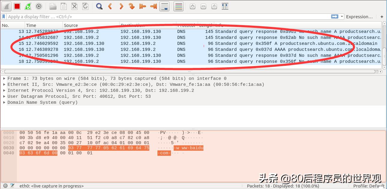 1. 打开wireshark,选择要监听的网络接口,这里我选择eth0: