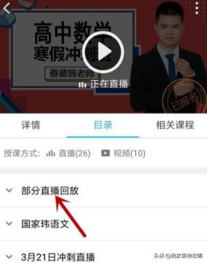4、在目录下找到【部分直播回放】并点击展开。