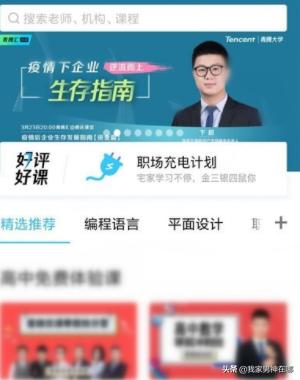 腾讯课堂是腾讯推出的专业在线教育平台,聚合大量优质教育机构和名师,下设职业培训、公务员考试、托福雅思、考证考级、英语口语、中小学教育等众多在线学习精品课程,打造老师在线上课教学、学生及时互动学习的课堂。
