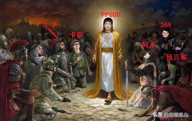 很显然,在TES不敌V5的BO3中,V5发挥出巨大的能量,让网友们产生了“TES被打服了”的感觉。同时PPGOD这个ID中的“GOD”又暗合了神,所以才会有网友以此为背景创作了这幅“拜神图”。