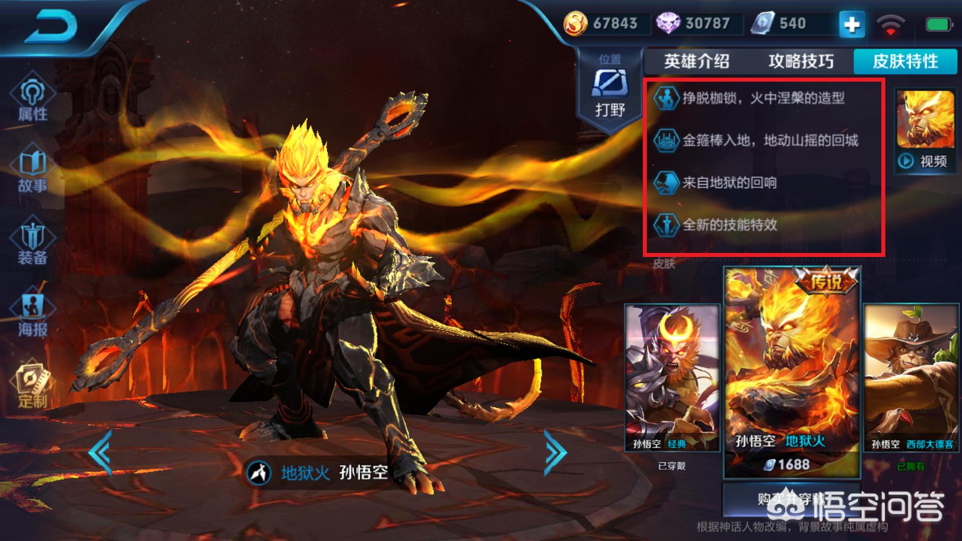 孙悟空的地狱火是一款非常优秀的皮肤,技能特效非常优秀,但是售价1688点券,稍微有些小贵啊!